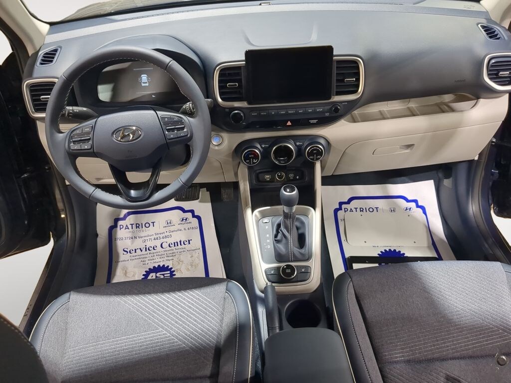 Option Group 01, Venue Limited, 4D Sport Utility, I4, FWD, Denim w/White Roof, Denim Cloth, 4-Wheel Disc Brakes, 6 Speakers, 6.5J x 17" Alloy Wheels, ABS brakes, Air Conditioning, All-Season Fitted Liners, Alloy wheels, AM/FM radio: SiriusXM, Apple CarPlay & Android Auto, Auto High-beam Headlights, Automatic temperature control, Brake assist, Bumpers: body-color, Carpeted Floor Mats, Cloth & Leatherette Seat Trim, Delay-off headlights, Driver door bin, Driver vanity mirror, Dual front impact airbags, Dual front side impact airbags, Electronic Stability Control, Emergency communication system, First Aid Kit, Front anti-roll bar, Front Bucket Seats, Front Center Armrest, Front reading lights, Front wheel independent suspension, Fully automatic headlights, Heated door mirrors, Heated Front Bucket Seats, Heated front seats, Illuminated entry, Leather Shift Knob, Leather steering wheel, Low tire pressure warning, Navigation System, Occupant sensing airbag, Outside temperature display, Overhead airbag, Overhead console, Panic alarm, Passenger door bin, Passenger vanity mirror, Power door mirrors, Power steering, Power windows, Radio: AM/FM/HD/SiriusXM w/Navigation System, Rear Seat Cup Holder, Rear window defroster, Rear window wiper, Remote keyless entry, Reversible Cargo Tray, Security system, Speed control, Speed-sensing steering, Split folding rear seat, Spoiler, Steering wheel mounted audio controls, Tachometer, Telescoping steering wheel, Tilt steering wheel, Traction control, Trip computer, and Variably intermittent wipers. CARPLAY, ANDROID AUTO, BLUETOOTH, BACKUP CAMERA, BLIND SPOT ASSIST, Venue Limited, 4D Sport Utility, I4, FWD, Denim w/White Roof, Denim Cloth.