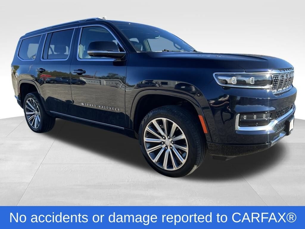 2023 Jeep Grand Wagoneer Base Midnight Sky 4WD 6.4L V8360 DEGREE CAMERA, 4X4, ADAPTIVE CRUISE CONTROL, ANDROID AUTO, APPLE CARPLAY, AUTOMATIC HEADLIGHTS, BLIND SPOT MONITOR, BLUETOOTH FOR PHONE, DUAL ZONE A/C, FORWARD COLLISION, FRONT HEATED SEATS, HEATED STEERING WHEEL, HEADS-UP DISPLAY, LANE DEPARTURE SYSTEM, LEATHER, NAVIGATION, PANORAMIC SUNROOF, PARKING SENSORS, POWER LIFT GATE, REAR CROSS TRAFFIC, REAR HEATED SEATS, REMOTE KEYLESS ENTRY, REMOTE START SYSTEM, SIRIUS XM RADIO, VENTILATED SEATS, WIRELESS CHARGING PAD, AIR SUSPENSION, MCINTOSH ENTERTAINMENT SYSTEM, 4D Sport Utility, 6.4L V8, 8-Speed Automatic, 4WD, Midnight Sky, Black Leather.Must finance at standard rates to receive any/or all Patriot discounts, PRICE DOES NOT INCLUDE TAX, TITLE, LICENSE, SERVICE FEE OF $399, DEALER OPTIONS.